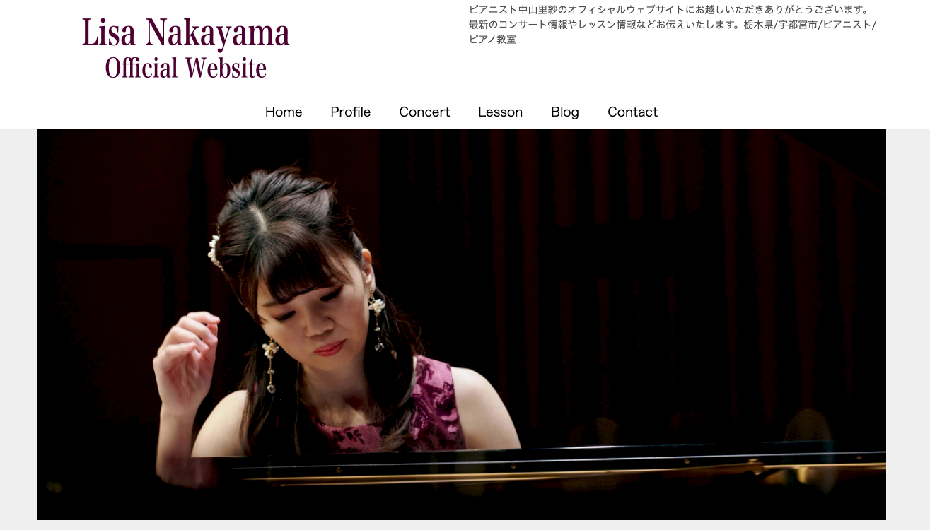 ピアニスト中山里紗のオフィシャルウェブサイトにお越しいただきありがとうございます。 最新のコンサート情報やレッスン情報などお伝えいたします。栃木県/宇都宮市/ピアニスト/ピアノ教室